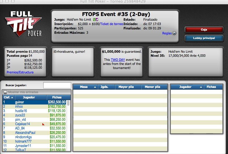 El pinchazo bueno llegó en el día 2 del evento 35, un torneo bastante caro, 2.100$, disputado por 525 jugadores. Aquí hubo luces y un más que digno sexto puesto final, que podría haber sido bastante más de ganar un flip de más de un millón de puntos, suficiente para ponerse en segunda posición.